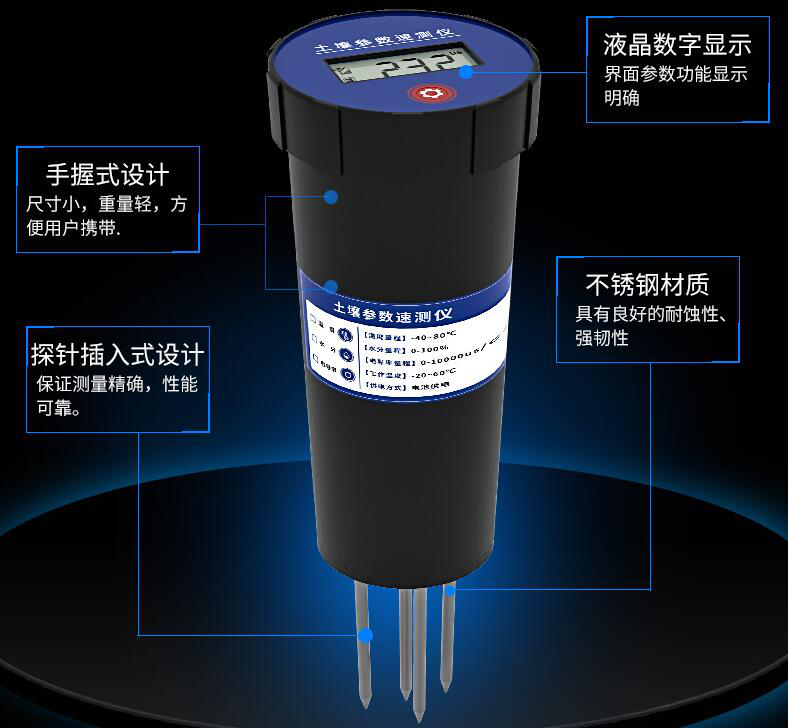 而監(jiān)測(cè)土壤溫濕度、土壤酸堿度、土壤電導(dǎo)率等的土壤監(jiān)測(cè)設(shè)備,要么是體積龐大,要么是價(jià)格昂貴,都不適合常規(guī)使用。土壤參數(shù)速測(cè)儀的出現(xiàn),無(wú)疑是解決了這一困擾。