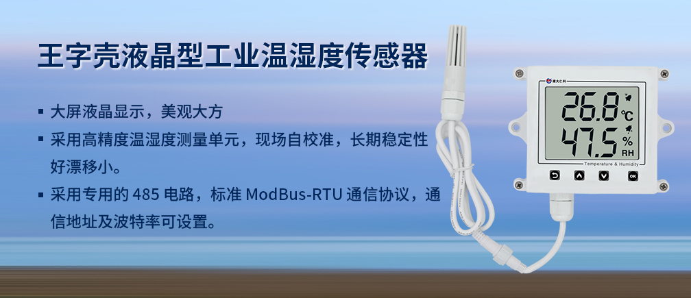 王字殼液晶型工業(yè)溫濕度傳感器帶有液晶顯示,可以實時顯示溫濕度,產(chǎn)品采用標(biāo)準(zhǔn)MODBUS-RTU通信協(xié)議,RS485信號輸出,通信距離最大可達(dá)2000米(實測)。探頭內(nèi)置、外延可選,廣泛適用于通訊機(jī)房、倉庫樓宇以及自控等需要溫濕度監(jiān)測的場所。安全可靠,外觀美觀,安裝方便。