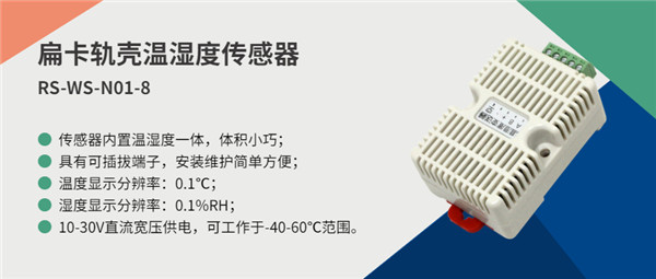 針對機柜內部溫濕度監(jiān)測,建大仁科推薦安裝扁卡軌殼溫濕度傳感器,用于機柜內部監(jiān)測其實時溫度和濕度。