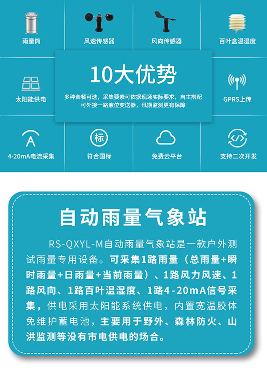 默認(rèn)脈沖當(dāng)量:0.5mm 可上傳瞬時(shí)雨量、日雨量、當(dāng)前雨量及累計(jì)雨量值。 |